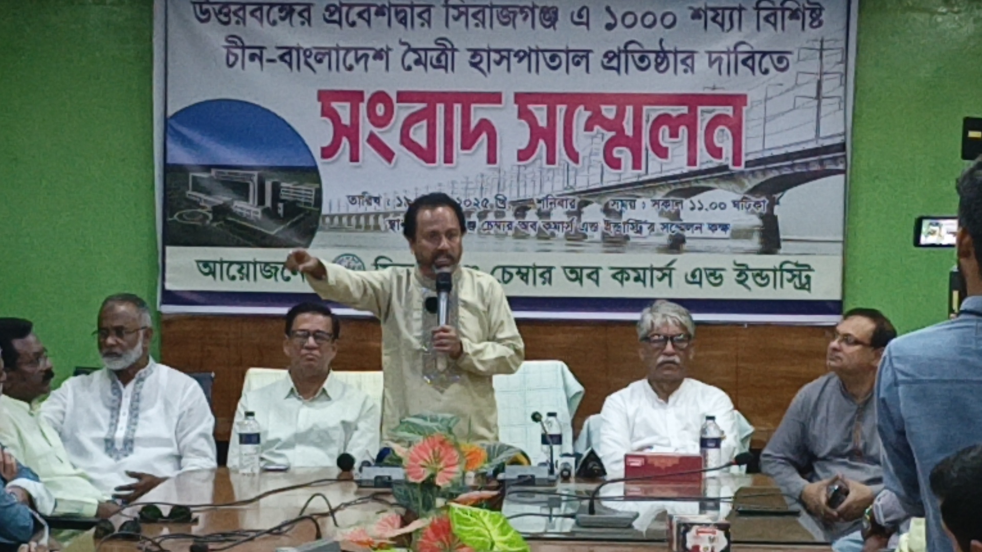 চীন-বাংলাদেশ মৈত্রী হাসপাতাল সিরাজগঞ্জে প্রতিষ্ঠার দাবিতে চেম্বার অব কমার্স এর প্রেসিডেন্ট বাচ্চুর সংবাদ সম্মেলন