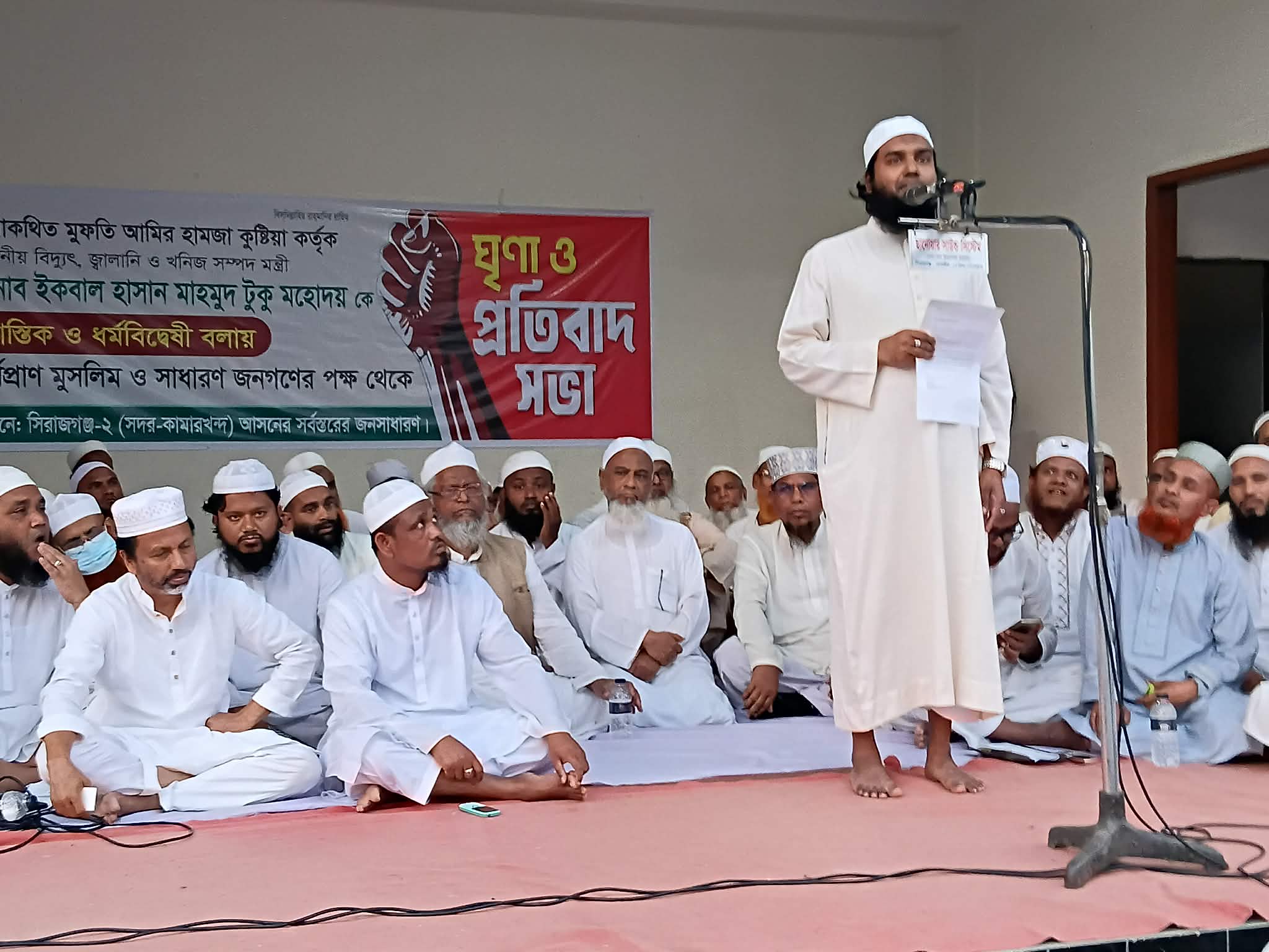 বিএনপির জাতীয় স্থায়ী কমিটির সদস্য এবং বিদ্যুৎ,জ্বালানি ও খনিজ সম্পদ মন্ত্রী ইকবাল হাসান মাহমুদ টুকু’কে মুফতি আমির হামজা নাস্তিক বলায় সিরাজগঞ্জে আলেম ওলামাদের প্রতিবাদ সভা