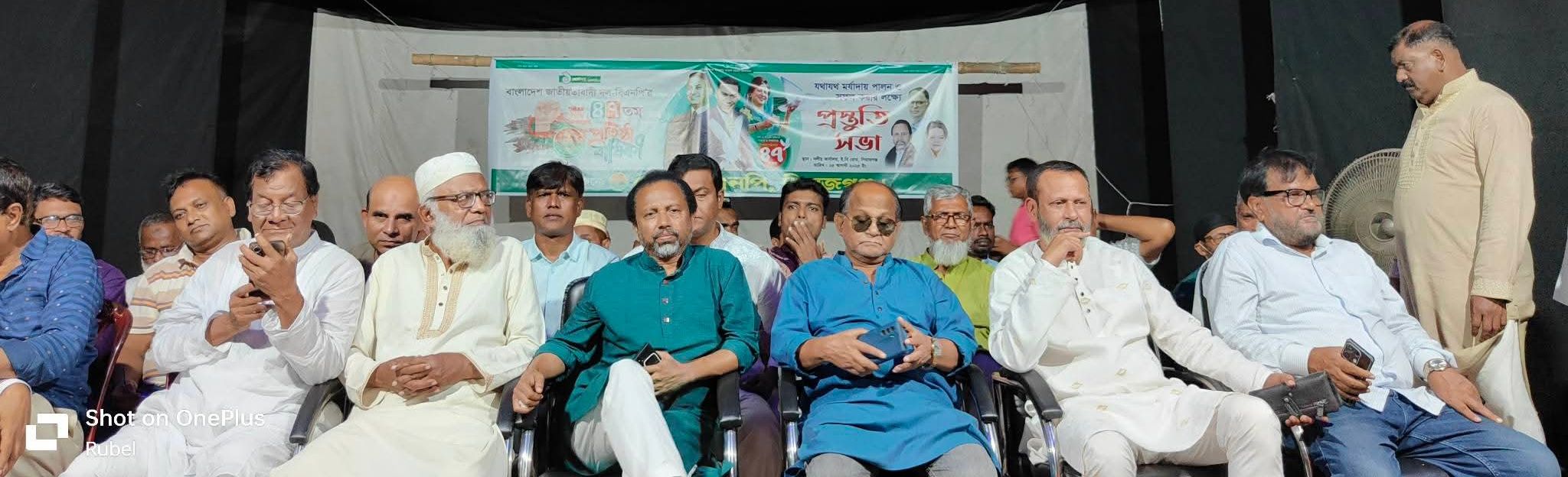 প্রস্তুতি সভায় প্রধান অতিথি হিসেবে বক্তব্যে রাখেন, বিএনপি'র কেন্দ্রীয় নির্বাহী কমিটির সদস্য ও জেলা বিএনপি'র সাধারণ সম্পাদক মোঃ সাইদুর রহমান বাচ্চু। এ প্রস্তুতি সভায় সভাপতিত্ব করেন, জেলা বিএনপির সহ-সভাপতি আলহাজ্ব মোঃ মকবুল হোসেন চৌধুরী এবং এ প্রস্তুতি সভায় উপস্থিত ছিলেন এবং বক্তব্য রাখেন, জেলা বিএনপির সহ-সভাপতি বীরমুক্তিযোদ্ধা আজিজুর রহমান দুলাল, শ্রী অমর কৃঞ্চ দাস,
