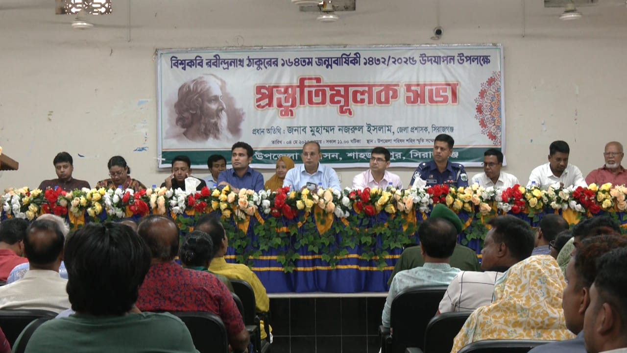 প্রধান অতিথি হিসেবে উপস্থিত থেকে বিশ্বকবি রবীন্দ্রনাথ ঠাকুরের ১৬৪তম জন্মবার্ষিকী উদযাপন কি ভাবে সম্পূর্ণ সার্থক করা যায় এর উপরে দিকনির্দেশনা মূলক বক্তব্য রাখেন , সিরাজগঞ্জ জেলা প্রশাসক মুহাম্মদ নজরুল ইসলাম।