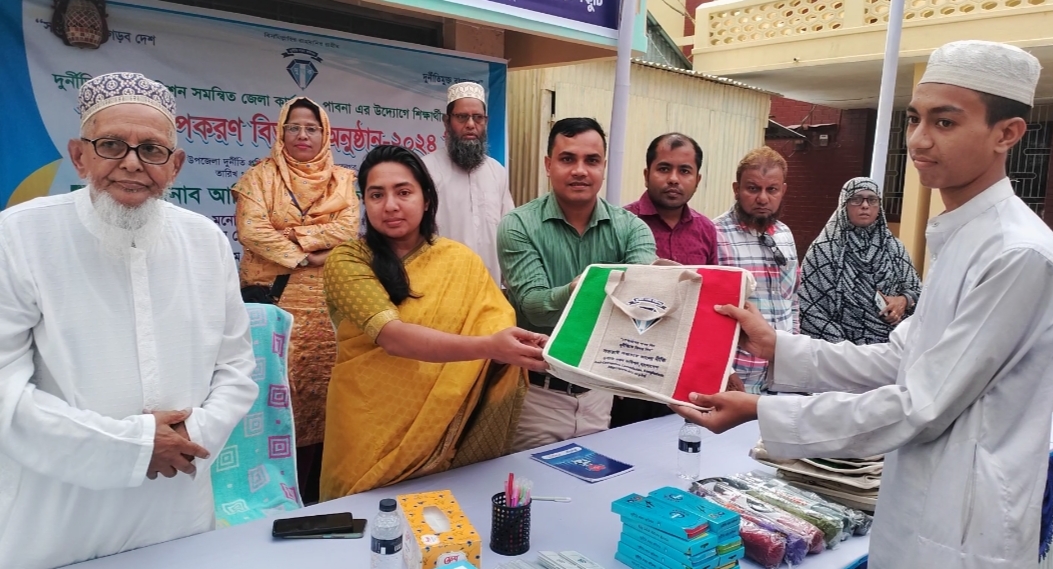 বেলকুচিতে দুর্নীতি দমন কমিশনের উদ্যোগে শিক্ষার্থীদের মাঝে শিক্ষা উপকরণ বিতরণ