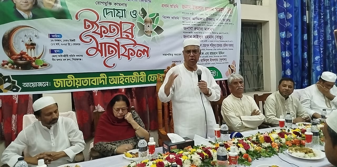 সোমবার সিরাজগঞ্জের জেলা আইনজীবী ভবনের দ্বিতীয়তলার হল রুমে জেলা জাতীয়তাবাদী আইনজীবী ফোরাম আয়োজিত ইফতার ও দোয়া মাহফিলে প্রধান অতিথির বক্তব্যে তিনি এসব কথা বলেন।