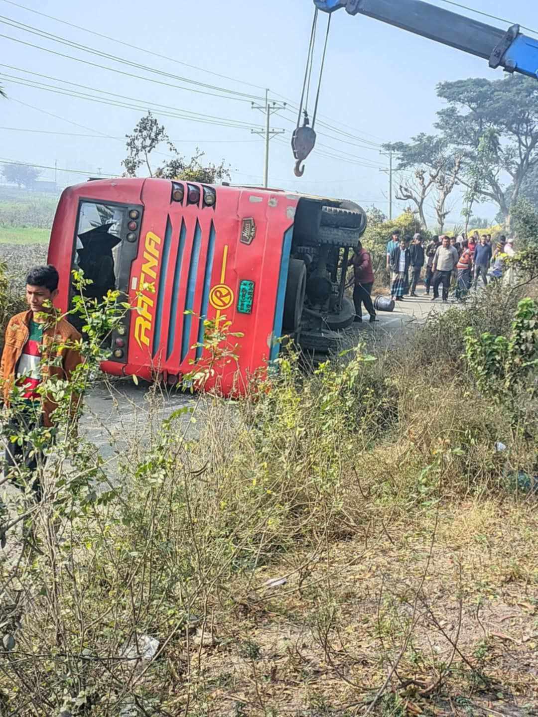 সলঙ্গায় যাত্রীবাহী বাস উল্টে নিহত ১, আহত ৫