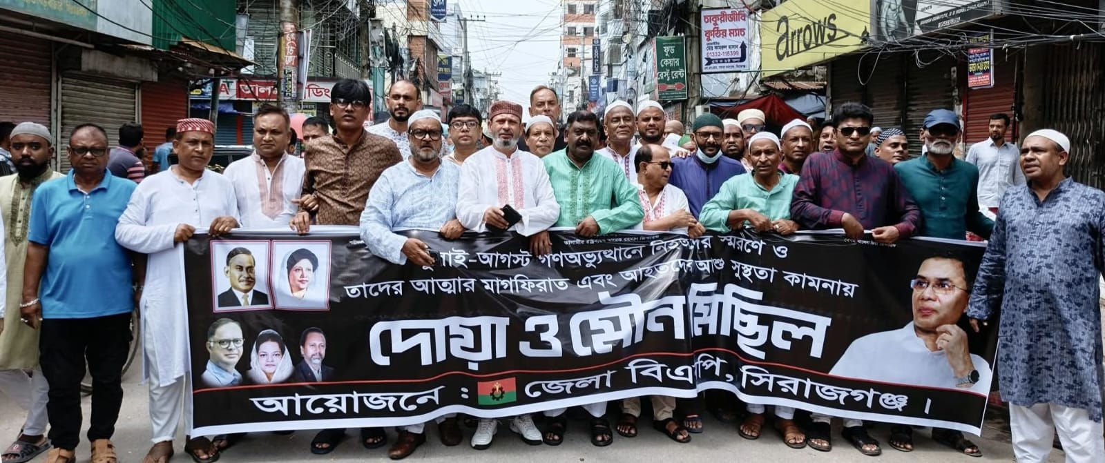 সিরাজগঞ্জে জুলাই শহীদদের স্মরণে জেলা বিএনপির দোয়া মাহফিল ও মৌন মিছিল অনুষ্ঠিত