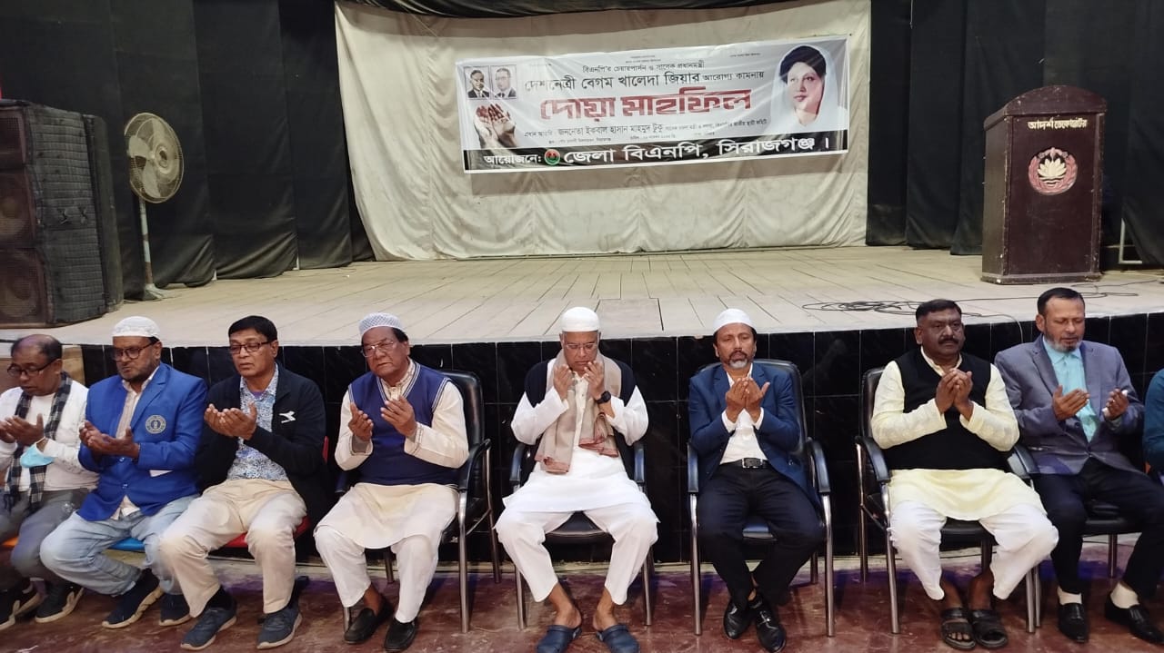 সিরাজগঞ্জ জেলা বিএনপি আয়োজনে বিএনপির চেয়ারপার্সন বেগম খালেদা জিয়ার সুস্থতা কামনা করে দোয়া মাহফিল অনুষ্ঠিত